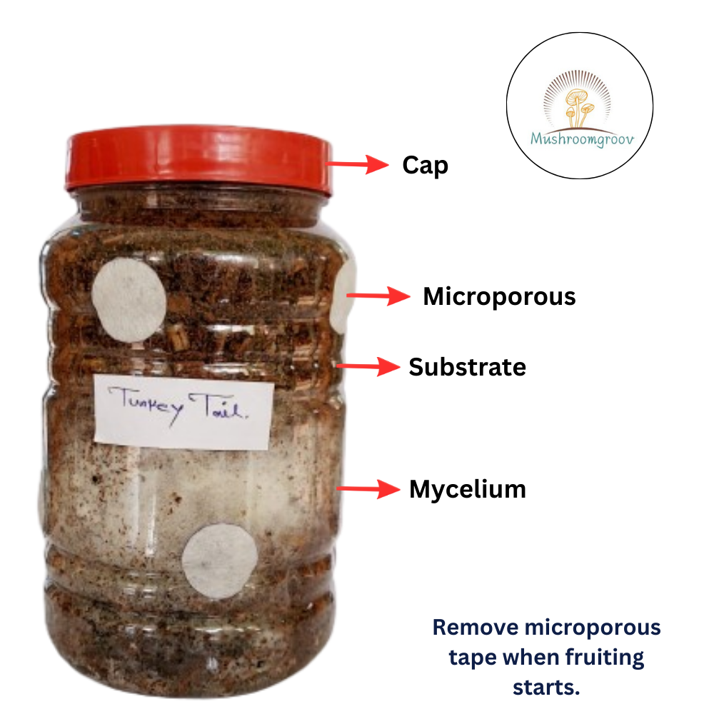 Grow delicious, gourmet Turkey Tail mushrooms (Trametes versicolor) at home with this Ready-to-Grow, fully inoculated mushroom jar. The jar is already filled with actively growing Turkey Tail mycelium—so there is no injection, no substrate preparation, and no technical steps required.